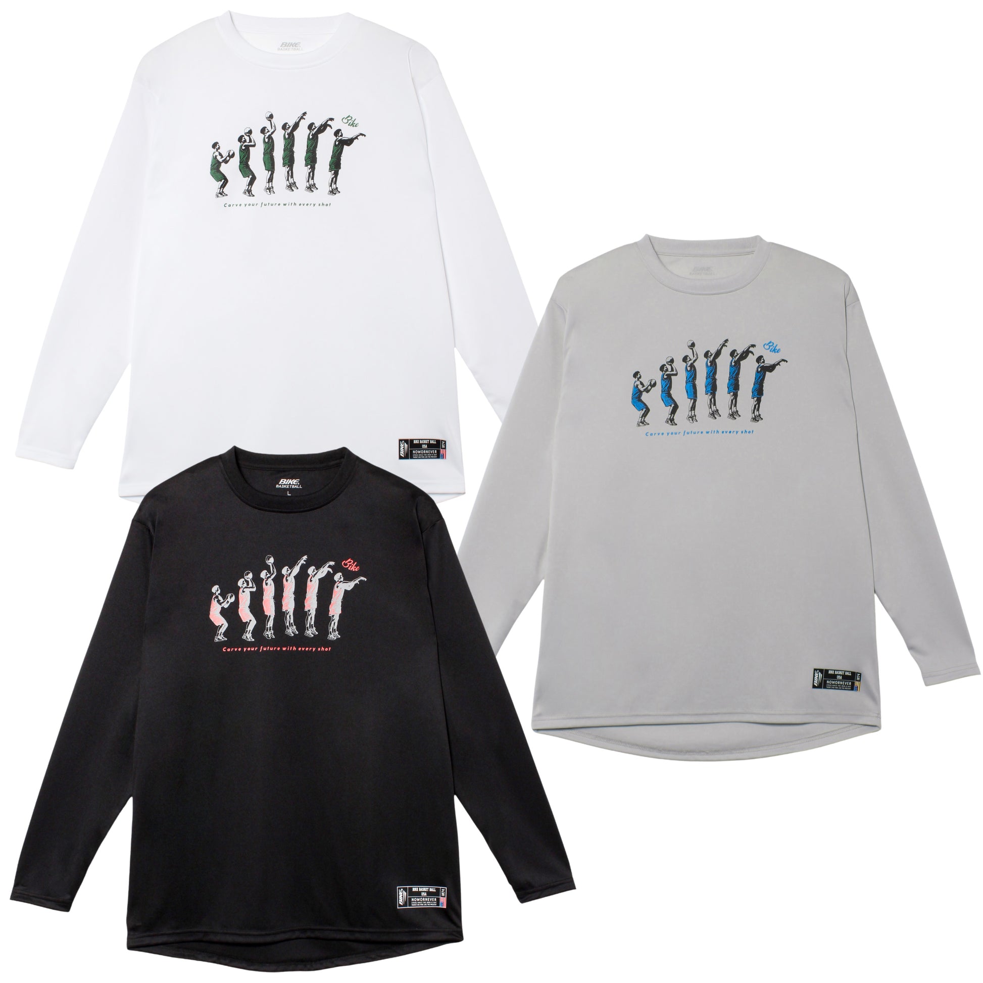 BIKEバスケットボールラインのメンズ、ユニセックスモデルの長袖プラクティスTシャツです。