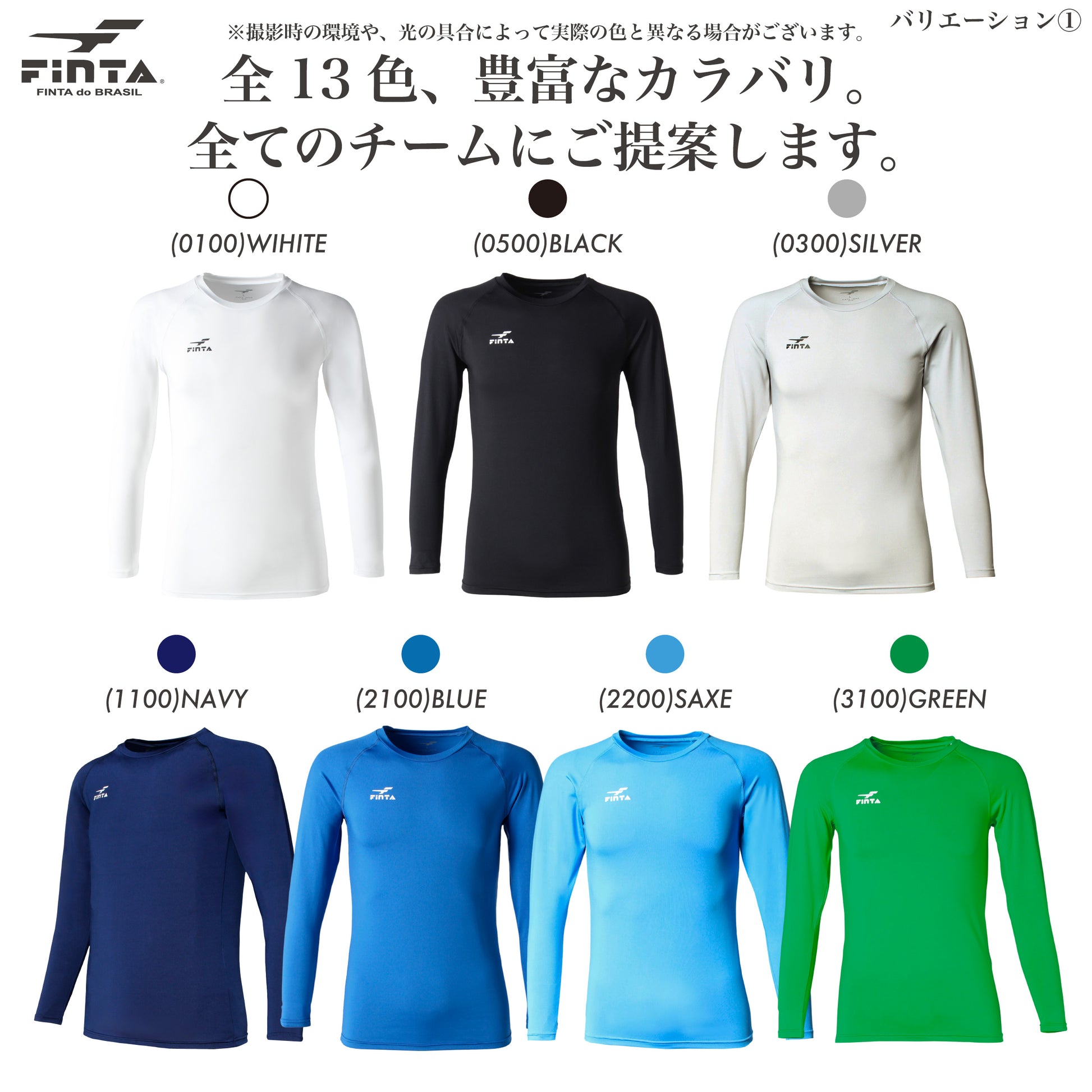 サッカー、フットサル用ののジュニアサイズの長袖丸首インナーシャツ。